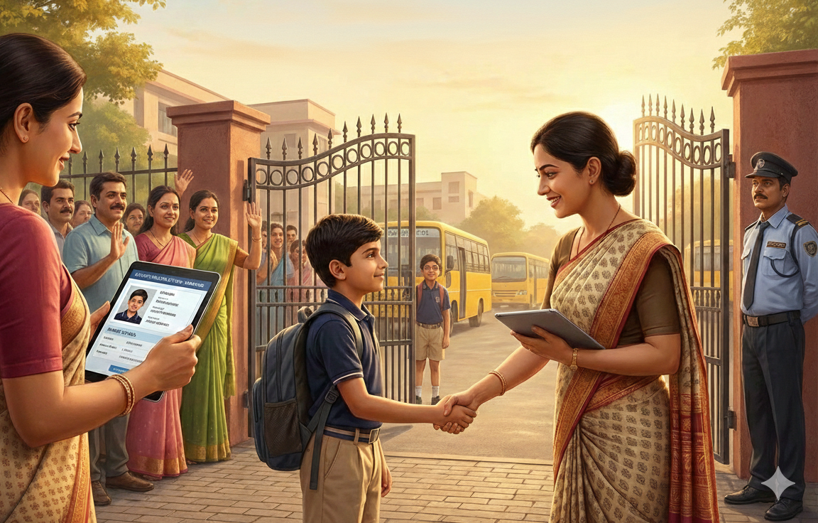 steps like online registration, entrance tests, or informal parent-student interactions.